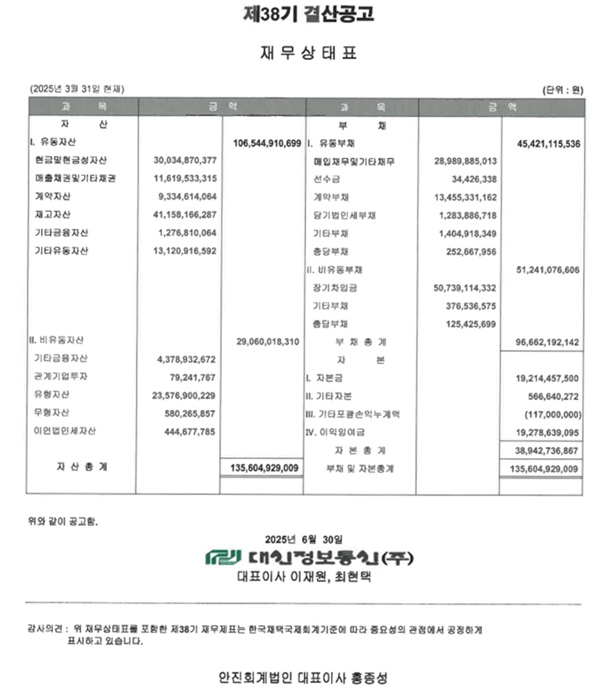 제 38기 결산공고